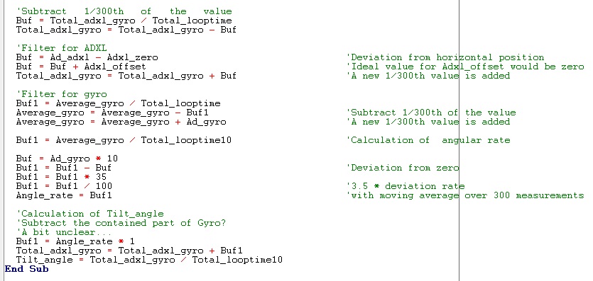 The Code calculate two variables: Tiltangle and Anglerate.