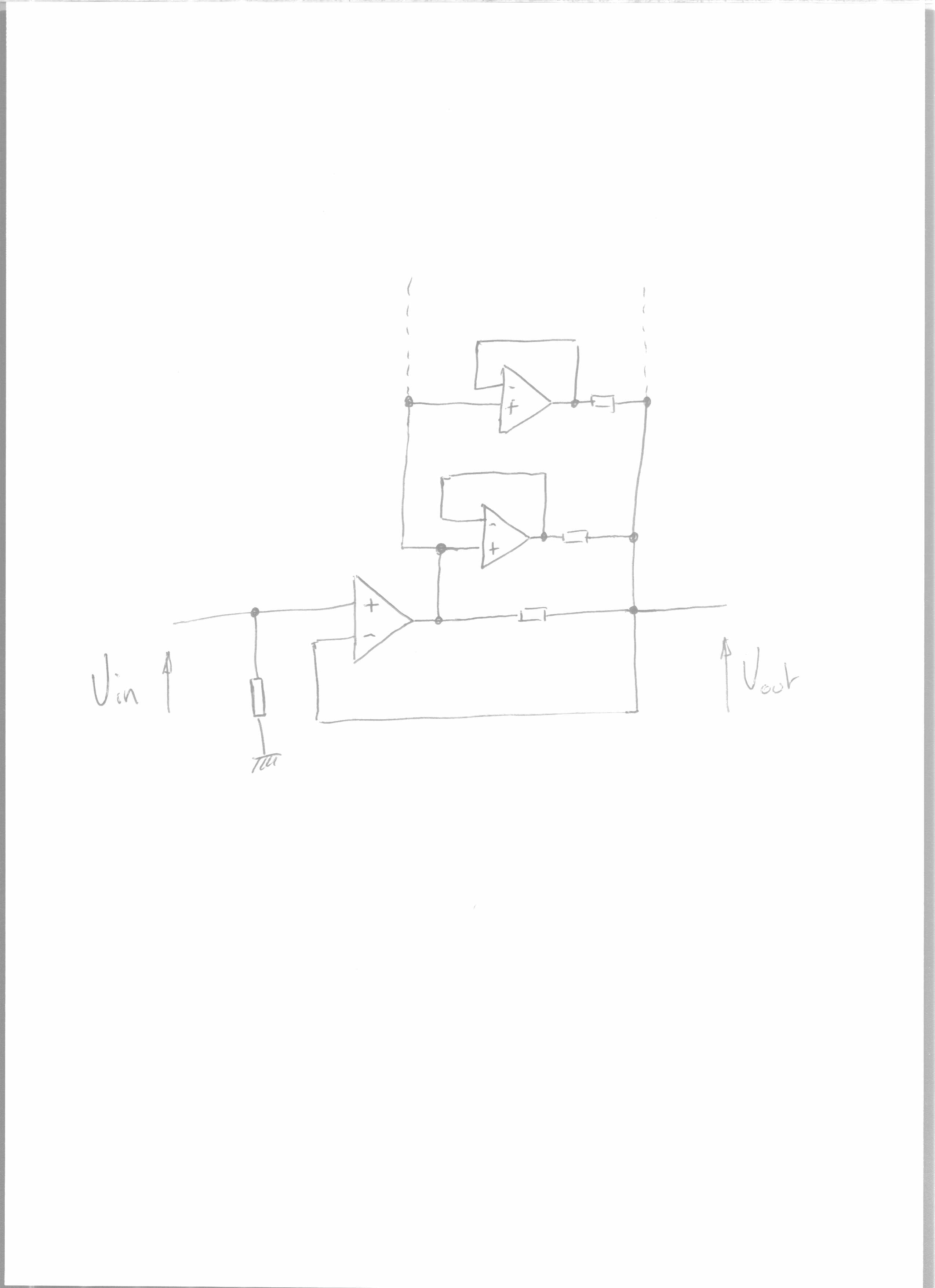 Je voulais juste savoir pourquoi n'avoir pas mis les résistances dans la boucle de contre-réaction du premier ampli suiveur comme indiqué sur mon schema en piece jointe ?