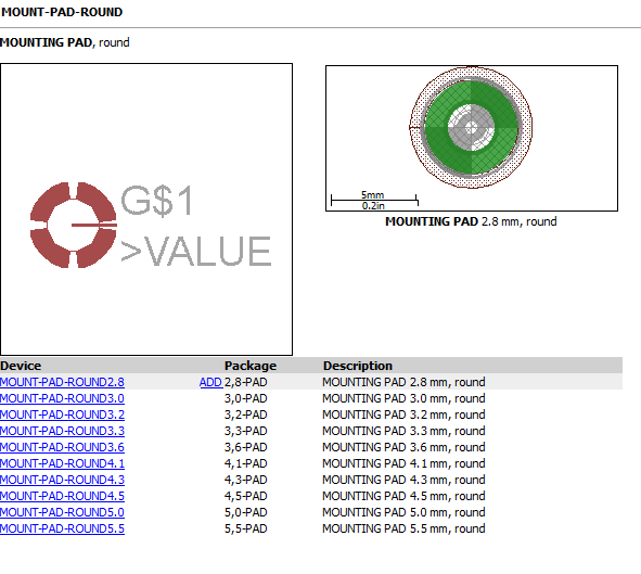 De toutes façons, faire un composant de fixation convenant à l'usage attendu se fait en quelques dizaines de secondes, ce n'est rien de plus qu'un pad et finalement le composant le plus simple à créer. Il y a longtemps que je ne cherche plus sur le net quand je ne trouve pas ce qui me convient dans les librairies que j'ai, je fais alors le composant qui me manque, cela va bien plus vite.