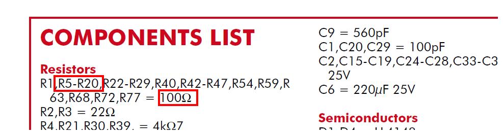 I'm now trying to assemble the circuit from Elektor magazine (february, 2008) - the digital variant of the surround light system and have found that in scheme at page 26 resistors R11, R15 and R16 are 1KOhm, but in the list of the components (p. 27) and on your site resistors R5-R20 are 100 Ohm resistors. Which values are correct? Thanks for the answer in advance!