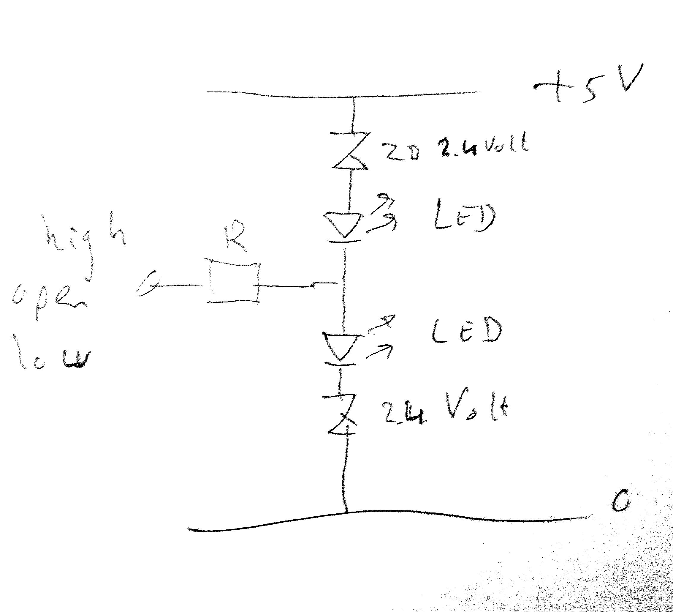 Ik wil de tristate output (High, open, low) van mijn microchip zichtbaar maken m.b.v. 2 LEDS. Eén LED voor high en één LED voor low en niks voor de open toestand.