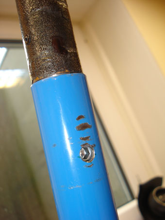 Anstelle des klobigen, wackligen Verbinders an der Lenkstange gibt es jetzt einen Verbinder der im Rohr verschwindet und mit einer Inbusschraube geklemmt wird.