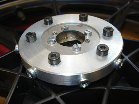 Die Räder sind jetzt mit einem zusätzlichen Aluring fixiert der mit den originalen Edelstahlteilen verschraubt ist. Zusätzlich noch zwei Schwerspannstifte durch das Ganze damit nirgends Spiel entstehen kann. Auf der Radaussenseite wie hier schon mal beschrieben: