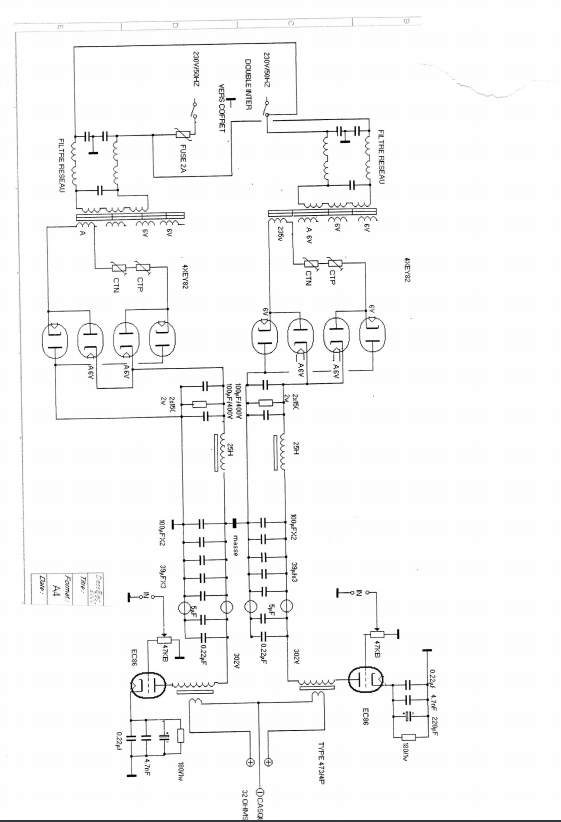 Bonjour Françis et a tous.La messe est dite!Je comprends maintenant rétrospectivement pourquoi j avais entendu une difference énorme entre l' ec 86 et e 86 c attribuant a cette deuxieme des performances subjective très supérieure.En fait l ec 86 devait aussi etre rincée (et a l époque je n était pas sur batterie ce qui a peu etre encore majoré un peu le probleme en étant un peu au dessus des 6,3 volts)Il va falloir maintenant reprendre tout ça Changer la polarisation de la cathode ne sera pas compliqué. Pour l alim, ça me contrarie fortement de devoir la desosser (ce n est pas moi qui l est faite)La premiere version sortait 280 volts etait avec un seul transfo redressement bi alternance avec 2 ez 80 puis division en y et filtraga CLC La nouvelle alim avec 35 volts de plus n a fait qu aggraver les choses.Pour faire simple!!!!serai ce une idée subjectivement performante de rajouter une cellule de filtrage CL en amont de l alim. déja presente avec un condo de petite valeur
