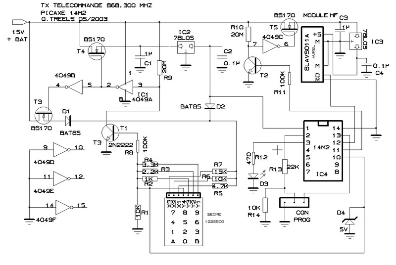 Suite à une demande client (la retraite ? Tu parles !), j'ai du repenser la télécommande précitée, en 869Mhz, et toujours sans fonction hibernate. Mais, avec une nette simplification.