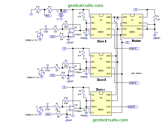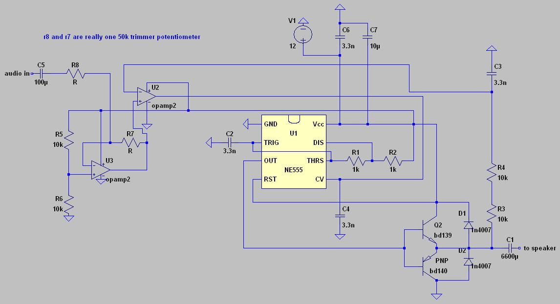 Ik heb onderstaande schakeling gebouwd(3 channel 555 class 5 amp) met een BD139/BD140 pushpull uitgangstrapje. (555 pwmqf2)
