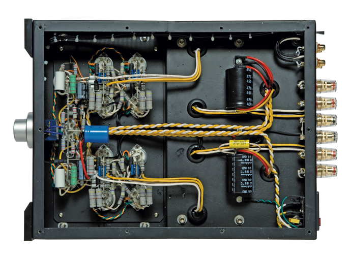 C'est une vue du dessous de l'ampli, on voit les composants mais pas les transfos..... :(