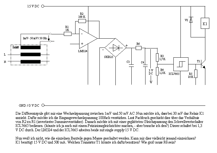 Im Prinzip alles an Masse. Aber der Vierweggleichrichter funktioniert dann nur noch als Einweg, also würde eine Diode reichen. Auch die kann man noch einsparen, weil der OPV nur positive Halbwellen verstärkt. Dann hat mal nicht das Problem mit der Schwellspannung von 0,6 V. So ein OPV-Gleichrichter sieht im Prinzip so aus, könnte man auch gleich mit 100-facher Verstärkung machen: