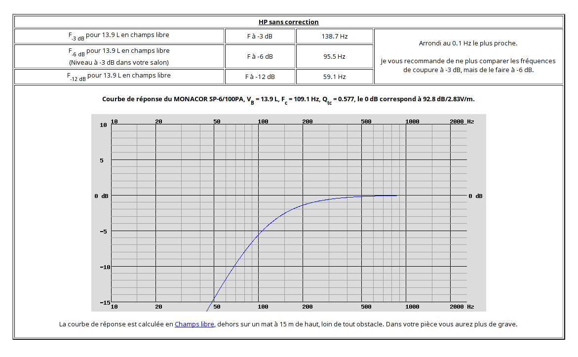 - avec une courbe de réponse bien plate le plus bas possible et donnant un coude brusque : le group-delay fait une vilaine bosse pointue, montrant bien le manque d'amortissement de la résonance...