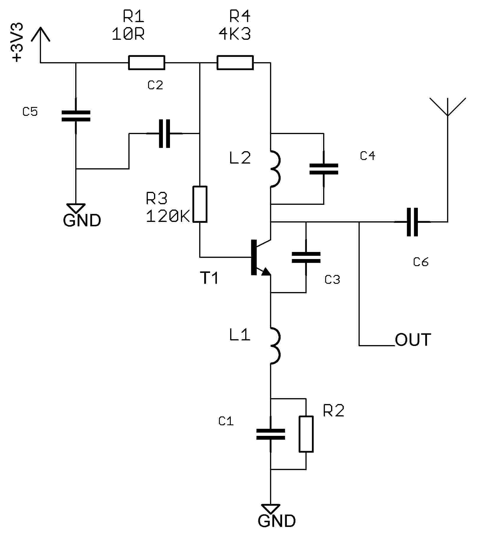 L2 est ajustable via une ferrite qui se visse, L1 est en 1206 et évidemment je ne connais pas les valeurs des capas....