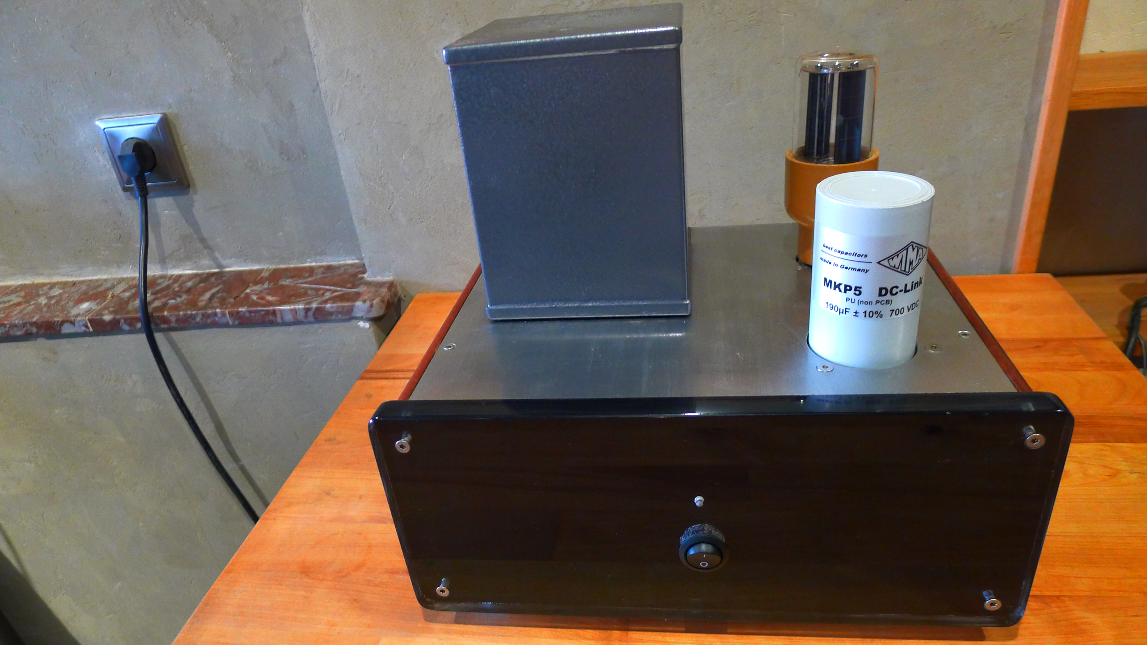 Il me reste beaucoup de choses à faire en attendant les composants pour la nouvelle alim 300B : diodes rapides pour les alims de l'étage d'entrée , je veux essayer aussi une alim d'entrée à vide , que je suis en train de faire .J'ai aussi essayé de mettre un 47000 µF/16V en sortie du module Ducrocq 5V , mais apparament ça l'empêche de démarrer .