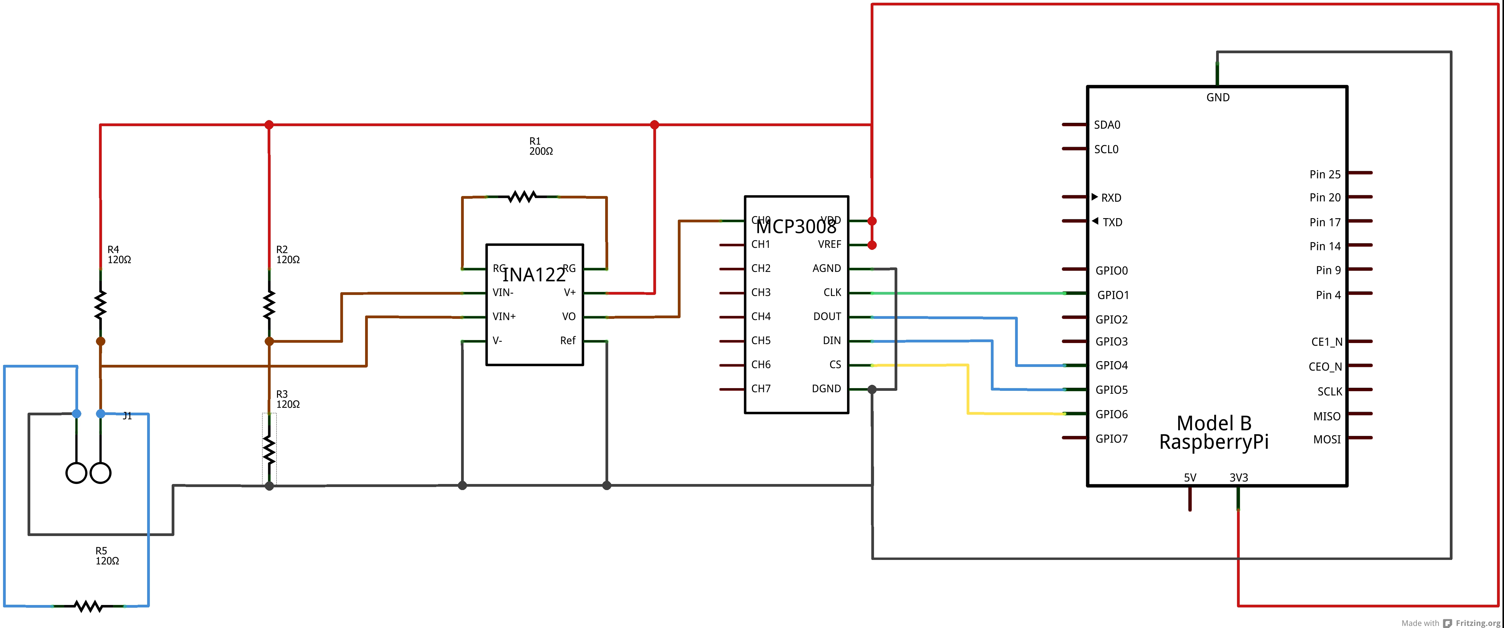 Ich habe mir aus einen Raspberry Pi, einem AD Wandler und einen Instrumentenverstärker eine Vorrichtung für das Digitalisieren von Dehnmessstreifen Werten gebaut. Das ist ein Schulprojekt, bei dem die Funktion von DMS demonstriert wird. Dazu wird der DMS auf einen kleinen statisch belastet Träger geklebt.