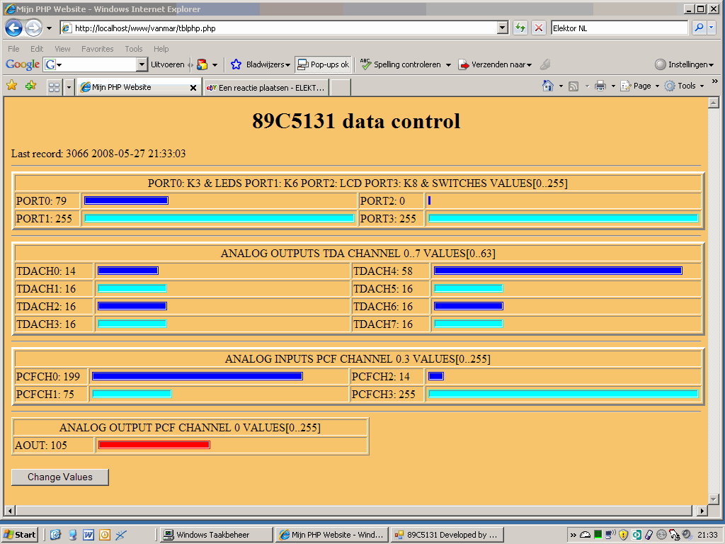 - Webapplicatie schrijven die de gemeten data uit de database haalt en presenteert in een webpagina.