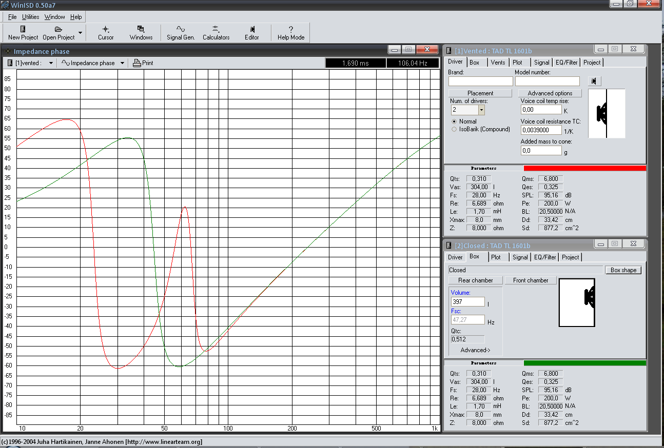 En attendant de recevoir mes 4 HP je parcours les forums et les sites Internet et je tombe sur le site de Nicolas Davidenko qui utilise des TAD TL1601 en enceinte close.